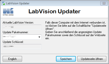 Nehmen Sie Kontakt mit unserer Softwareabteilung auf, um die Paketnummer und den Updateschlüssel ihres LabVision-Systems zu erhalten.